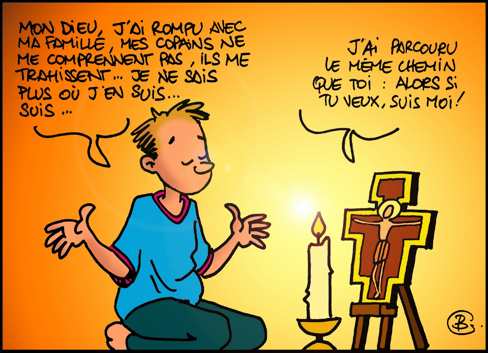 Tout est question de regard, semble nous dire cette parabole. Si le riche avait vu Lazare, peut-être aurait-il eu un geste de compassion envers lui et désormais, après sa mort, Lazare pourrait en avoir un envers lui : envoie Lazare tremper dans l’eau le bout de son doigt pour me rafraîchir la langue ! Mais il n’a rien vu, le riche, et donc rien fait ; et maintenant, c’est trop tard ! La sagesse populaire le dit : un bien fait n’est jamais perdu ! Il ne suffit pas que nous menions notre vie sans faire de mal aux autres ; il ne suffit pas de vouloir être bien avec tous. Paul le rappelle à Timothée : et maintenant, voici ce que je t’ordonne : garde le commandement du Seigneur, en demeurant irréprochable et droit jusqu’au moment où se manifestera notre Seigneur Jésus Christ. Le commandement du Seigneur, c’est bien d’aimer les autres ! C’est son unique commandement ! Pas seulement nous abstenir de leur faire du mal, non, mais les aimer comme Dieu les aime, gratuitement, portant leur souci, intervenant en leur faveur. Vivre selon Dieu et aimer comme Dieu : c’est tout ce qui nous est demandé ; mais ce sont deux choses qu’il nous faut partager. Je ne vis pas seul ; je n’aime pas seul.
